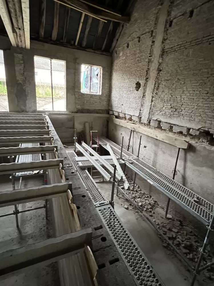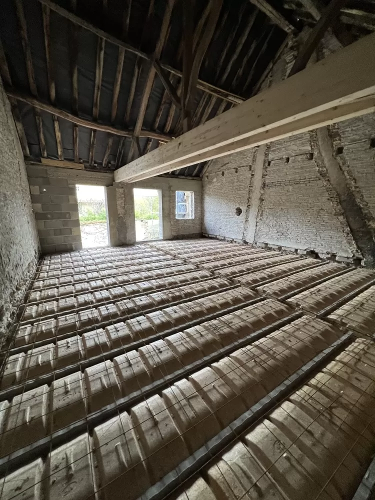 Votre maçon à Verdun-sur-le-Doubs est intervenu chez un particulier pour faire une création d'un plancher en béton, pour cela nous installons les poutres pour pouvoir couler la dalle par la suite.