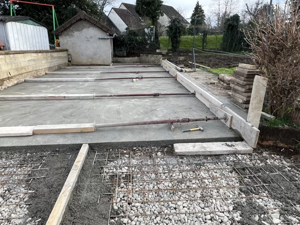 votre entreprise de terrassement à Sennecey-le-Grand a effectué un terrassement dans une cour intérieure, nous avons fait le coulage d'une dalle en béton avec finition talochée.